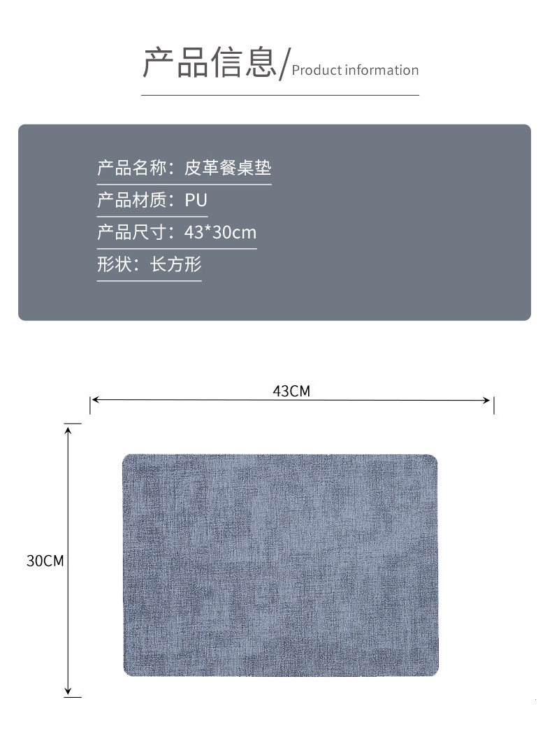 Northern Europe Ins Simple Cloth Leather Placemat Double-Sided Waterproof Anti-Hot Insulation Table Mat Square Western Placemat Wholesale